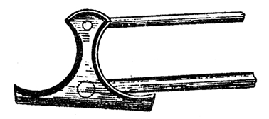 1) врезанной снизу спусковой личинки, или малой скобы, которая служит также для придания большей прочности шейке ложи; в щели личинки проходят спуски (собачки), которые вращаются на шпеньке между стойками личинки;