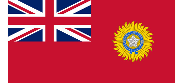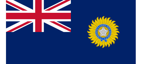 В 1857 г. Индия стала протекторатом Великобритании, для которого в 1858 г. был учрежден флаг – британский «красный флаг» с бэджем, но без короны, в вольной части. Также использовался и «синий флаг» с бэджем.