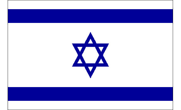 Государственный флаг Израиля был официально учрежден только 12 ноября 1948 г. Он представляет собой белое полотнище (пропорции 173: 250) с изображением синей звезды Давида в центре, а сверху и снизу флага, на некотором расстоянии от его краев, две синие горизонтальные полосы. Пропорции полос флага (белой, синей, белой, синей, белой) 14: 30: 85: 30: 14.