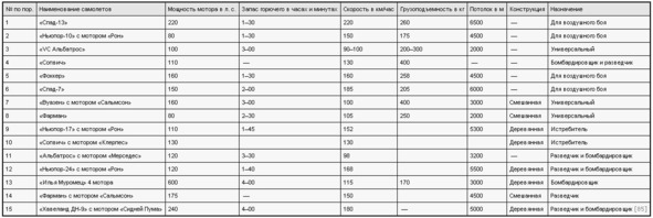 ТТХ самолетов авиации РККА в 1920 г.