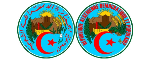 1 ноября 1976 г. в Алжире была принята новая Конституция, которая утвердила новый рисунок государственной печати. Так как печать часто используется вместо государственного герба, то часто во многих изданиях ее по ошибке называют государственным гербом. На печати изображены красные полумесяц и пятиконечная звезда, над ними золотая «ладонь Фатимы», обрамленная снизу двумя зелеными ветвями; над «ладонью Фатимы» – горы и восходящее над ними золотое солнце; справа снизу от «ладони Фатимы» изображены фабричные сооружения и буровая нефтяная вышка, обрамленные зеленой пальмовой ветвью, слева – три серебряные колосья с зелеными листьями. Окружает печать название государства, написанное по-арабски или по-французски (есть два варианта печати).