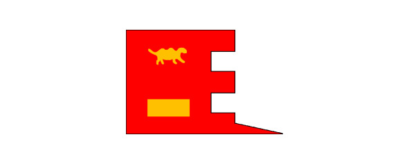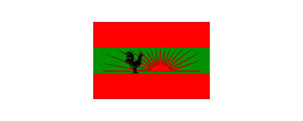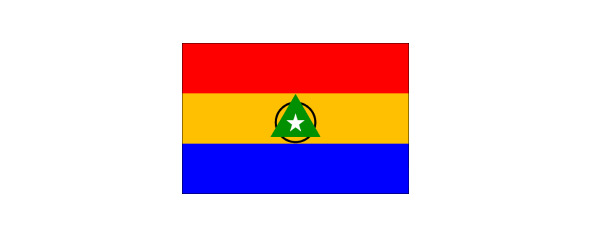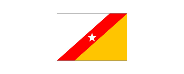 Флаг (пропорции 2: 3) состоит из двух горизонтальных полос равной ширины, золотистой и красной, и зеленой вертикальной (ширина 1/3 длины флага) полосы у древка.