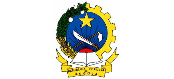 Герб независимой Анголы был учрежден 11 ноября 1975 г. В его голубом поле изображена раскрытая книга, как символ образования, знаний и культуры; над ней – красное восходящее солнце, символизирующее новое общество; на фоне солнечных лучей – перекрещенные мотыга и нож-мачете, символизирующие мирный труд и борьбу за свободу; над ними – золотая пятиконечная звезда независимости, которая была изображена на флаге МПЛА. Справа поле герба обрамляют золотой стебель кукурузы с початком, зеленые листья кофе и стебли хлопка с раскрытыми коробочками. Слева поле обрамляет половина золотого зубчатого колеса. Кукуруза, хлопок и кофе являются самыми важными сельскохозяйственными культурами страны, они символизируют крестьян; зубчатое колесо – рабочих. На ленте герба первоначально было начертано «Народная Республика Ангола».