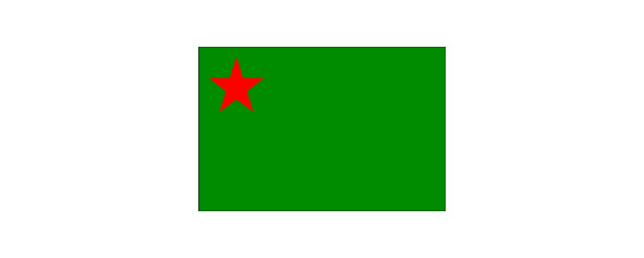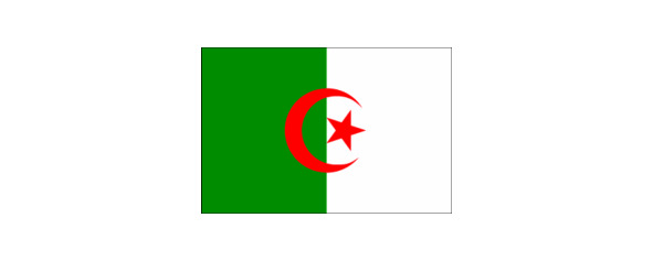 Официально государственный флаг Алжира был утвержден 3 июля 1962 г. Он представляет собой прямоугольное полотнище (пропорции 2: 3), состоящее из зеленой и белой вертикальных полос, на стыке которых изображен красный полумесяц, обращенный от древка, а между его рогами, на белой половине – красная пятиконечная звезда.
