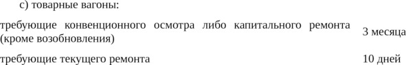 Для ремонта возвращаемого подвижного состава в мастерских России и Украины устанавливаются следующие сроки, считая со дня подписания протокола осмотра:
