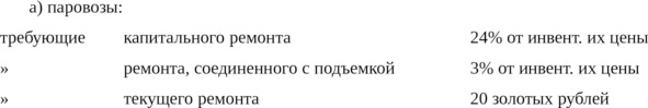 Подвижной состав, требующий случайного ремонта, зачисляется в соответственную категорию или же расценивается отдельно по ценам 1914 года.