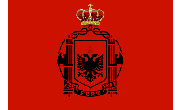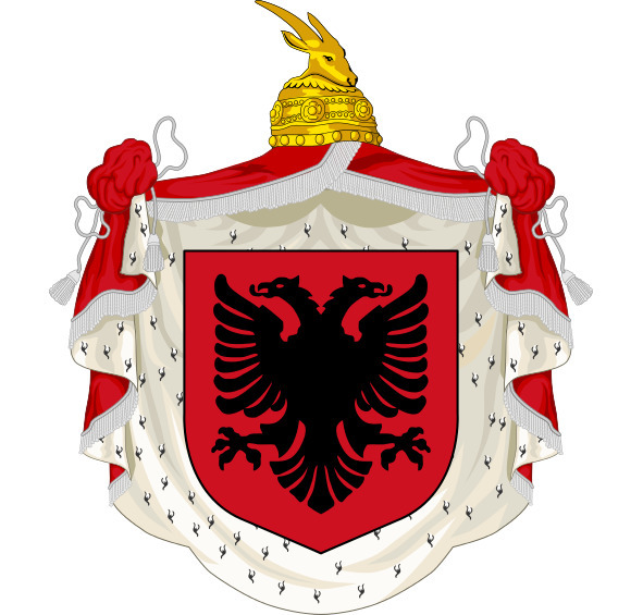 В 1929 г. был утвержден герб королевства: на мантию, увенчанную шлемом Скандербега, который замещал корону, помещен щит, в красном поле которого черный двуглавый орел.