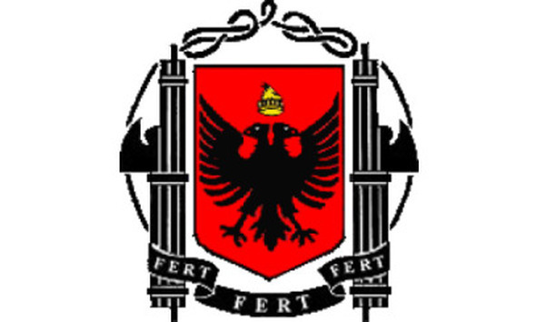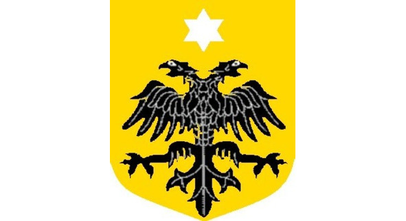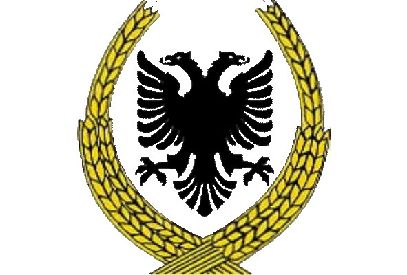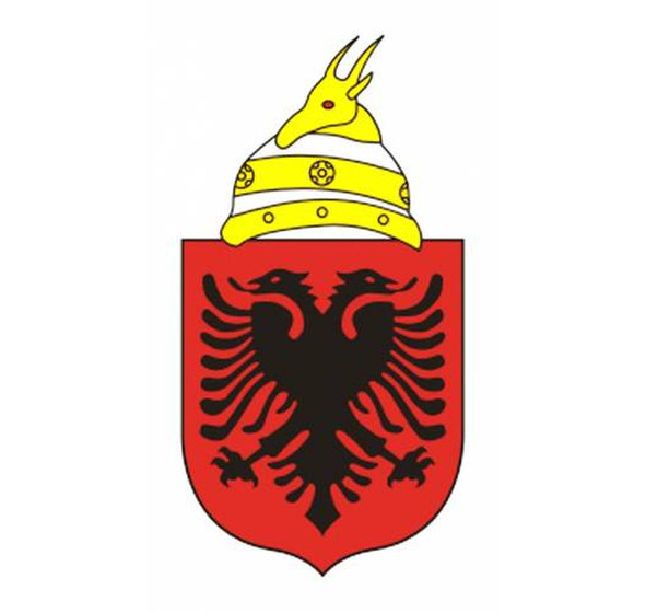 В 2003 г. герб был изменен: щит дополнила золотая кайма, а шлем Скандерберга увенчал орла.