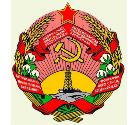 14 февраля 1931 г. на VII Всеазербайджанском съезде Советов была принята новая Конституция республики, которая утвердила и новый герб. Стремясь отразить в гербе все достижения республики, его автор – художник Б.Р.Рено изобразил на светло-красном поле, окаймленном серебряным кругом, золотые серп и молот, полумесяц со звездой и лучи восходящего солнца; в нижней части герба, под кругом, на фоне восходящего солнца с помощью трех цветов – черного, белого и серого – были изображены: с правой стороны – семь буровых вышек и две нефтяные емкости, с левой – горы с заснеженными вершинами, у подножия которых азербайджанское селение и вспаханное поле, на котором трактор, управляемый трактористом. Все изображение окаймлял венок из четырех стеблей пшеницы, перехваченный трижды красной лентой; вверху лента с надписью латинскими буквами «Азербайджанская Социалистическая Советская Республика» лежала поверх серпа и молота; внизу лента с надписью латинскими буквами «Пролетарии всех стран, соединяйтесь!» соединяла обе ветви венка.
