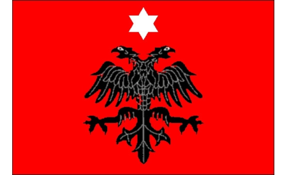Согласно народных преданий, Георгий Скандербег, возглавивший борьбу против турецкого господства, за основу своего флага взял флаг Турции, на который вместо полумесяца и звезды поместил изображение древнего герба Византии – черного двуглавого орла, увенчанного серебряной звездой Давида, как символ единства человека и Бога.