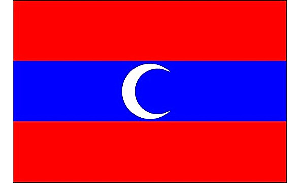 Для торговых судов, которыми владели албанцы-мусульмане был установлен похожий флаг: красное полотнище с синей полосой посередине и белым полумесяцем на ней.