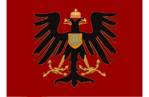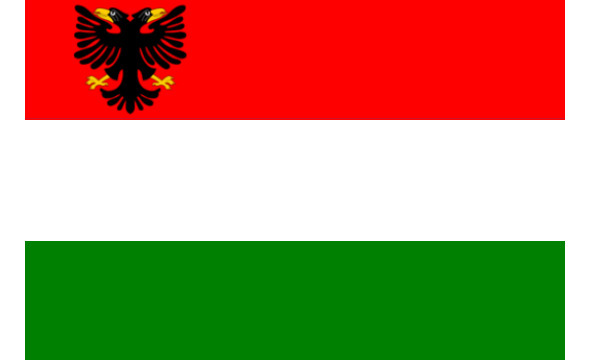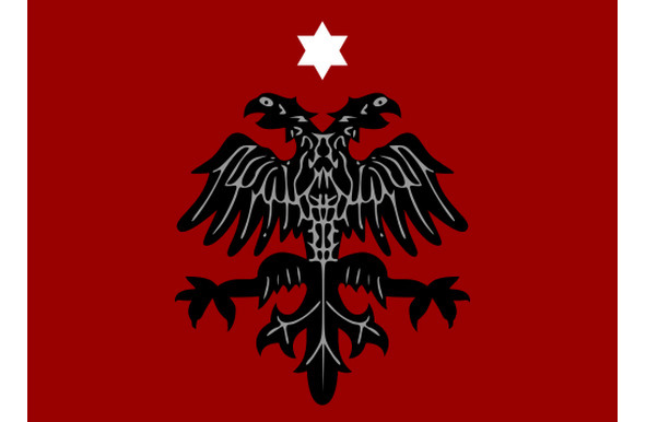 В 1943 г. итальянская оккупация сменилась немецкой и созданное немцами правительство в 1944 г. приняло флаг, на котором был изображен лишь черный двуглавый орел без каких-либо украшений.