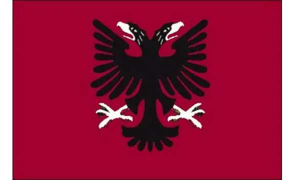 Первый собственно албанский флаг появился в 1912 г., с провозглашением независимости: в середине красного полотнища большой черный двуглавый орел, над которым белая звезда независимости.