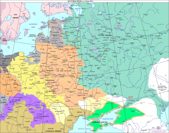«Того же году были в Торопце на литовском рубеже межевые судьи Меньшой Волынский, да Даниле Исленьев, да дьяки Пешек Жуков, да Нелюб Нальянов по договору и по утверженным записем розводить рубежа по всем городом по литовским порубежным. И литовские люди, наруша мирное поставленье, рубежей розводить не дали. А положили рубежи мимо договора своим произволом, зашедчи многие места московских городов.