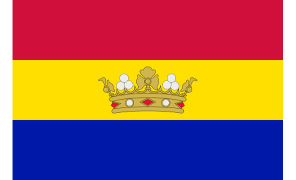До середины ХХ в. был более известен испанский вариант государственного флага – с горизонтальным расположением полос и французской графской короной в центре желтой полосы, который в некоторых источниках упоминается, как флаг, утвержденный Борисом Скосыревым и использовавшимся в 1934—1939 гг.