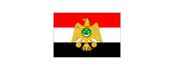 После военного переворота, 23 июля 1952 г. Египет стал республикой, но до 1958 г. государственным флагом страны оставался флаг королевства. Однако часто рядом с государственным флагом поднимался и флаг революции 1953 г., которую совершили офицеры королевской гвардии. Этот флаг состоял из красной, белой и черной полос, а в центре был изображен государственный герб – золотой орел Сал-ад-Дина, на груди которого круглый щиток с полумесяцем и тремя звездами.