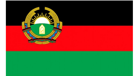 После свержения Наджибуллы, новое руководство Афганистана приняло 2 декабря 1992 г. новый флаг: зелено-бело-черное полотнище (пропорции 1: 2) с изображением герба образца 1929 г.