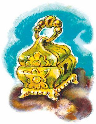 – На золотые монеты художник купил разноцветные кирпичики, зелёную жесть, цветные стёкла, красный бархат и в подвале своего дома, в круглой комнате из желтоватого мрамора, соорудил чудной красоты кукольный театр. Он мечтал, что вход в него для всех малышей будет бесплатным.