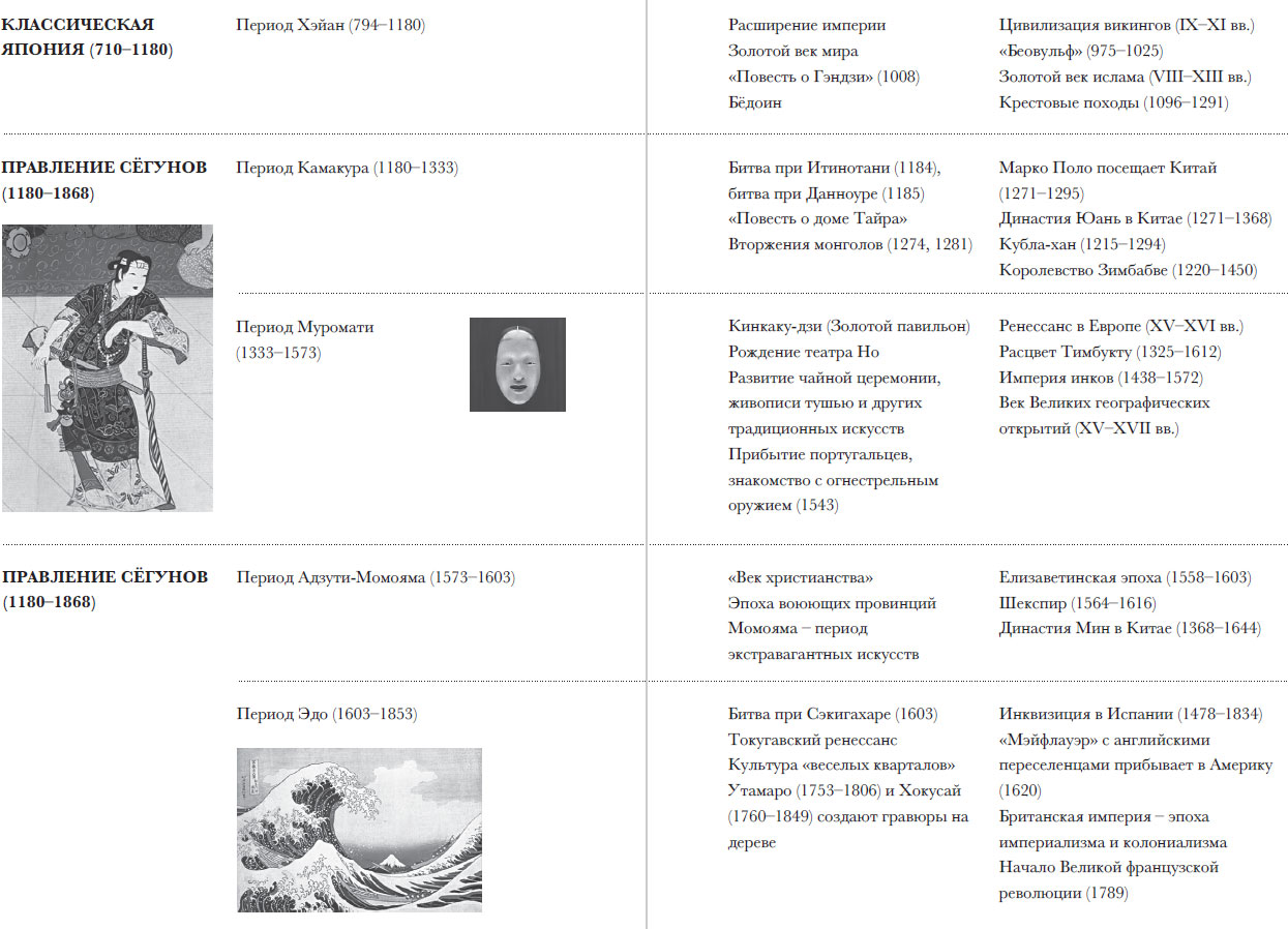 В этой книге я соблюдаю традиционное деление истории на эры – сначала по историческому периоду, потом по месту, где находилась столица, а после 1868 года – по посмертному имени императора.