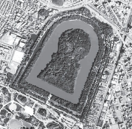 Курган Нинтоку, имеющий силуэт замочной скважины, занимает участок большей площади, чем пирамида Хеопса