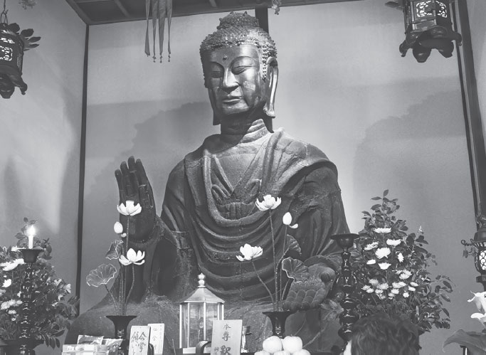 Прежде чем попасть в Японию, буддизм распространялся вдоль Шелкового пути, двигаясь из Индии в Китай и Корею, и приобрел колорит, свойственный этим культурам. Учение Махаяны, Великой Колесницы, являлось гораздо более сложным и тщательно разработанным, чем простые, суровые наставления исторического Будды Гаутамы или буддизм Тхеравады – «учение старейших», которое процветало на Цейлоне. В махаянской традиции Будды – это существа, проявленные в человеческой форме, которым поклоняются в храмах, а само учение излагается в священных писаниях.