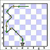 Черный король прошел путь на свою голгофу – с поля b8 до поля d1 – через всю доску! И когда кажется, он достиг тихой гавани (у белых нет больше шахов), слон, который стоял на h3, стреляя в пустоту и выполняя только охранные функции на поле е6, наносит свой удар.