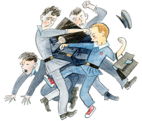 Звонок на перемену. Иван привинчивает голову и носится по школе.