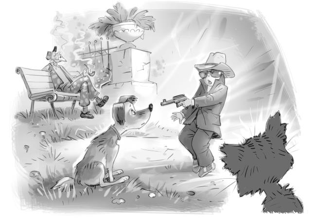Странный человек вытащил пистолет, прицелился в пса, крикнул: