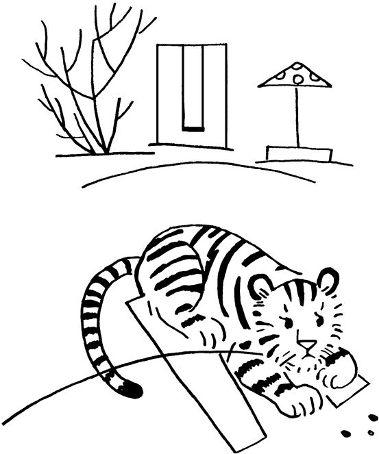 Когда он выскочил из подъезда, то увидел, что штаны его лежат на асфальте. А на штанах лежит тигрёнок.