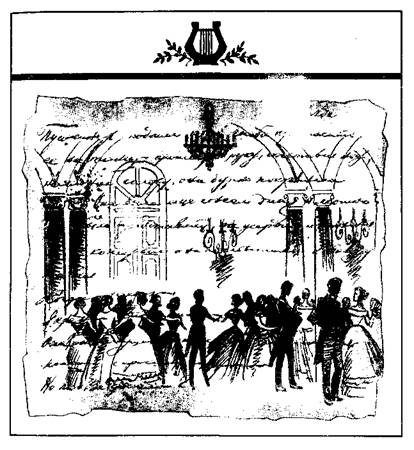 Зала была длинная, с закругленными углами. В одном конце хозяйка вокруг себя собрала в кружок почетных дам. В другом конце хозяин беседовал с почетными гостями. Слуги в позументных фраках разносили чай, печенье, мороженое. Вдоль стен расселись маменьки и тетушки, а их дочки, племянницы или воспитанницы кружились с кавалерами.