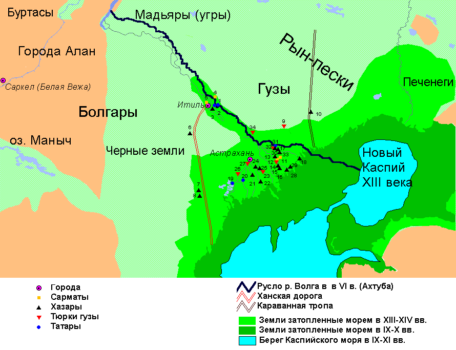 Карта 1. Волжская Хазария в VI–XIII вв.