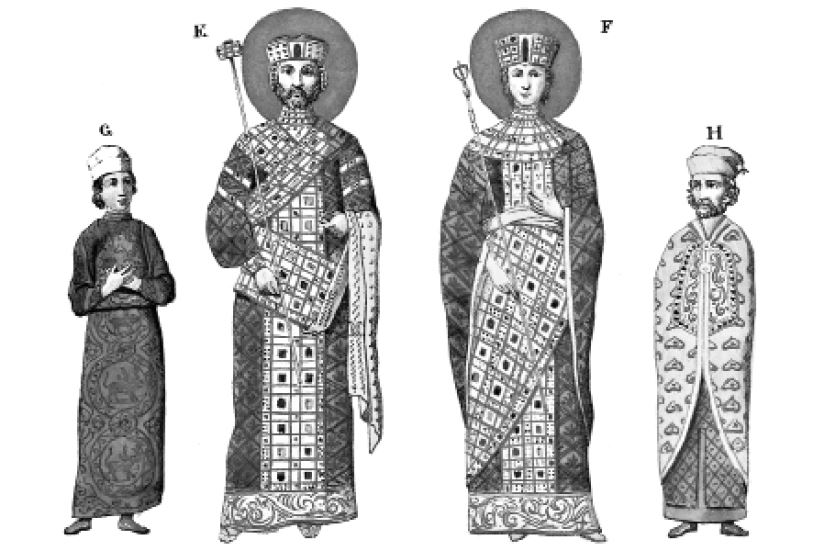 G, H – Знатные придворные люди времен императора Никифора Вотаниата. Все фигуры заимствованы из Монфокона (Montfaucon etc. Bibliothec. Coisliniana, Parisiis. 1715)