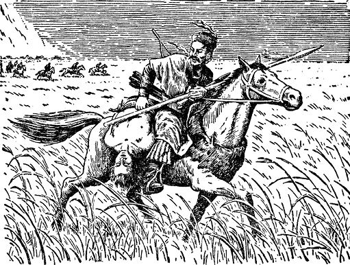 Возвращаясь на твердую почву установленных фактов, мы убеждаемся в реальности похода Святослава против хазар. Молодой князь, оказавшийся энергичным полководцем, начал его летом 964 г. Святослав не решился идти от Киева к Волге напрямую через степи. Это было очень опасно, ибо племя северян, обитавшее на этом пути между Черниговом и Курском, было сторонником хазар. Русы поднялись по Днепру до его верховьев и перетащили ладьи в Оку. По Оке и Волге Святослав и дошел до столицы Хазарии – Итиля.