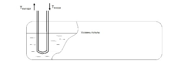 Заказчик поставил задачу: повысить точность измерения уровня пульпы? Измерять ее снаружи невозможно – стенка цистерны – 12 мм стали, 10 мм свинца и еще 80 мм огнеупорного кирпича. Значит контроль возможен только по нагреву воды. Но температура нагрева воды в трубке зависит не только от длины контакта, но и от температуры внутри реактора и многих других причин. Да и измерение температуры тяжело оценивать с высокой точностью. Как быть?