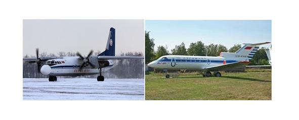 Рисунок 24. Турбореактивный самолет АН-24 и реактивный самолет ЯК-40
