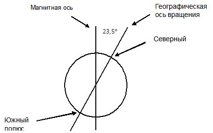 Мы знаем, что земля вращается вокруг своей оси, полюсами которой являются Северный и Южный полюса. Эту воображаемую ось называют географической осью Земли, и в настоящее время северным своим концом ось указывает примерно на Полярную звезду в созвездии Малой Медведицы. Подобно этому магнитная ось Земли проходит через магнитные Северный и Южный полюса.
