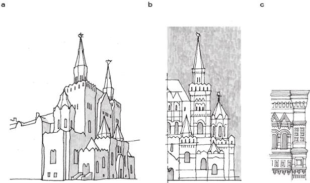 1 Исторический музей в Москве: объемно-пространственная композиция (a) – композиция фасада (b) – декор (c)
