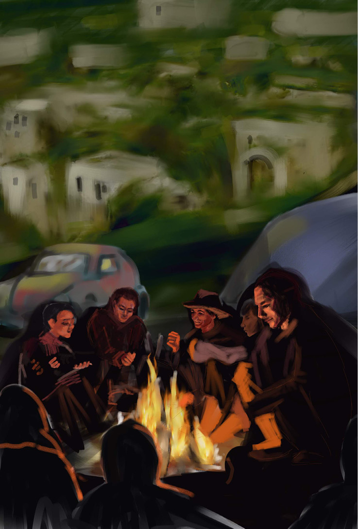 Когда подъехали к «Лифте», дождь закончился, и экипажу «Жука» удалось без помех разбить две палатки. Руководил этой операцией, вместе с Даником Шевинским и Сергеем Игелем, самый активный из них – Дима Гальперин. Саша Смолкин занимался пиротехникой, надо было разжечь мокрые ветки и несколько припасенных сухих поленьев на еще влажной земле. Две девушки – Ада Вальшонок и подружка Смолкина, Таня Беккер, – распаковали сумки с продуктами: маринованным мясом, овощами, лепешками, хумусом, напитками – и принялись нанизывать пропитанные маринадом куски на шампуры. Игорь Беллер, непререкаемый авторитет в области спиртосодержащих субстанций, колдовал над ингредиентами создаваемого им шедевра – глинтвейна «а-ля Беллер».