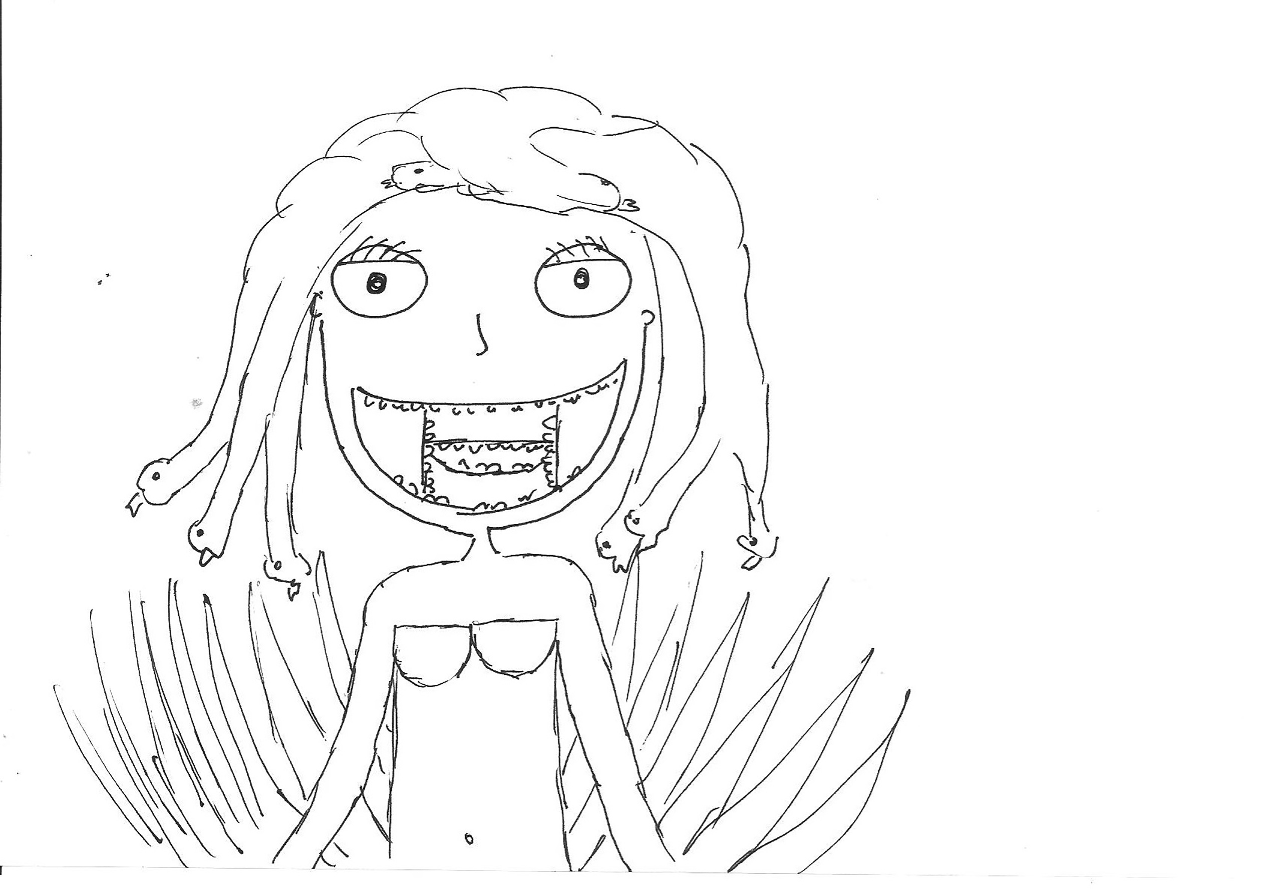 На экране появился рисунок Харибды – девушка с волосами в виде змей и зелеными щупальцами. Она была в фиолетовом купальнике. У нее во рту был другой рот, внутри него был еще один рот. Никто не знает, как на самом деле выглядит блогерка и как ее зовут, но всех вполне устраивает персонаж, от лица которого она вещает. Все три рта у аватара открываются и закрываются. В комментах часто пишут, что Харибда привлекательная.