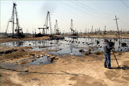 Чтобы своими глазами увидеть источник бакинского богатства, достаточно проехать 9 километров до поселка Балаханы. Вся территория здесь густо утыкана нефтяными качалками. Местами разливаются даже небольшие озера нефти, так что в них можно при желании искупаться или зачерпнуть ведро на память. Мрачноватый индустриальный пейзаж, каменистая безжизненная пустыня, щедро напитанная черной жирной субстанцией, давшей невиданный рост и расцвет Баку.