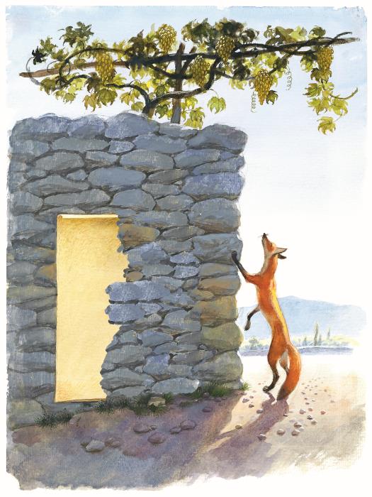 Лисица увидала – висят спелые кисти винограда, и стала прилаживаться, как бы их съесть.