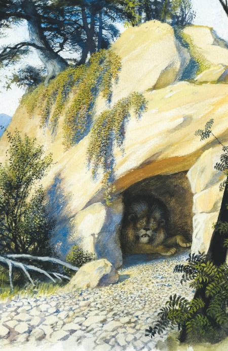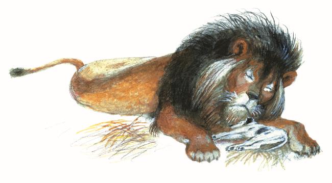 Вечером, когда лев лёг спать, собачка легла подле него и положила свою голову ему на лапу.