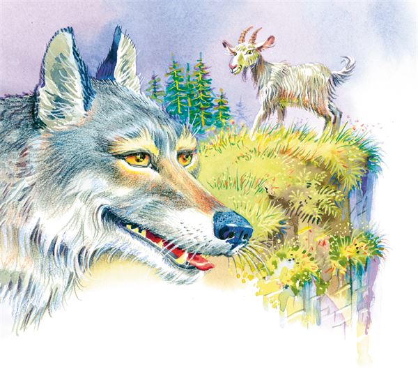 Волк видит – коза пасётся на каменной горе, и нельзя ему к ней подобраться; он ей и говорит: