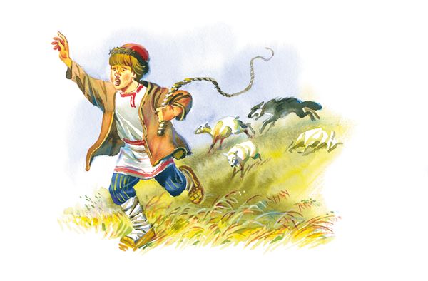 Мальчик стерёг овец и, будто увидав волка, стал звать: