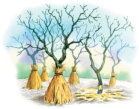 Я посадил двести молодых яблонь и три года весною и осенью окапывал их, и на зиму завёртывал соломою от зайцев. На четвёртый год, когда сошёл снег, я пошёл смотреть свои яблони. Они потолстели в зиму; кора на них была глянцевитая и налитая; сучки все были целы и на всех кончиках и на развилинках сидели круглые, как горошинки, цветовые почки. Кое-где уже лопнули распукалки и виднелись алые края цве товых листьев. Я знал, что все распуколки будут цветами и плодами, и радовался, глядя на свои яблони. Но когда я развернул первую яблоню, я увидал, что внизу, над самой землёю, кора яблони обгрызена кругом по самую древесину, как белое кольцо. Это сделали мыши. Я развернул другую яблоню – и на другой было то же самое. Из двухсот яблонь ни одной не осталось целой. Я замазал обгрызенные места смолою и воском; но когда яблони распустились, цветы их сейчас же спали. Вышли маленькие листики – и те завяли и засохли. Кора сморщилась и почернела. Из двухсот яблонь осталось только девять. На этих девяти яблонях кора была не кругом объедена, а в белом кольце оставалась полоска коры. На этих полосках, в том месте, где расходилась кора, сделались наросты, и яблони хотя и поболели, но пошли. Остальные все пропали, только ниже обгрызенных мест пошли отростки, и то всё дикие.