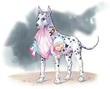 Собаку эту звали Мильтон: она была высокая, худая, крапчатая по серому, с длинными брылами и ушами и очень сильная и умная.