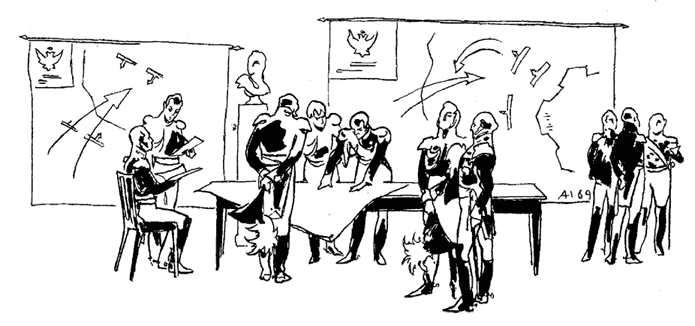 Князь Петр Михайлович Волконский занимал должность как бы начальника штаба государя. Волконский вышел из кабинета и, принеся в гостиную карты и разложив их на столе, передал вопросы, на которые он желал слышать мнение собранных господ. Дело было в том, что в ночь было получено известие (впоследствии оказавшееся ложным) о движении французов в обход Дрисского лагеря.
