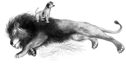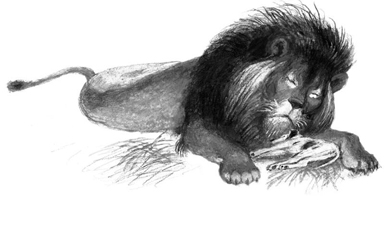 Вечером, когда лев лёг спать, собачка легла подле него и положила свою голову ему на лапу.
