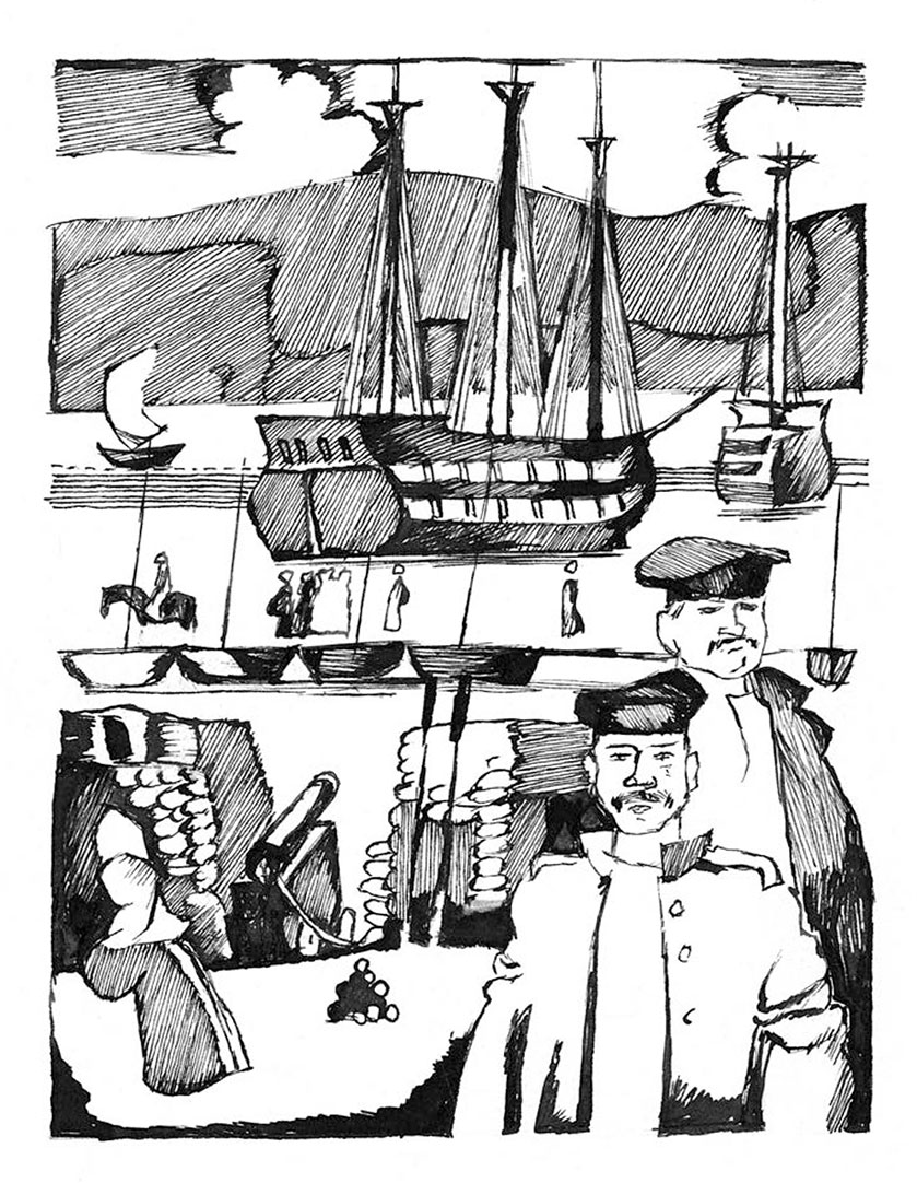 – А на нем пушки-то еще все, – заметит беловолосый парень, проходя мимо корабля и разглядывая его.