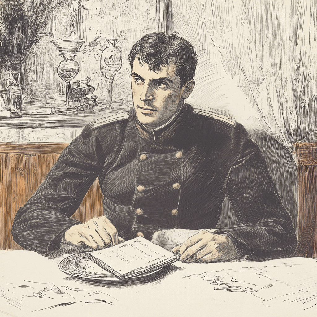 Пухлый офицер взял карту вин и обратился к молоденькому офицеру.